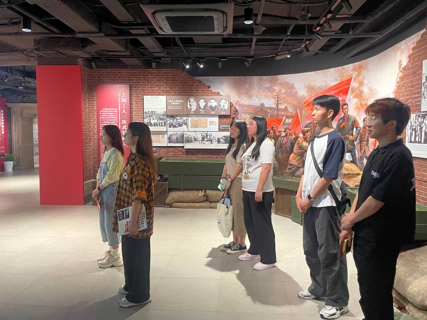 中共四大纪念馆坐落于上海市虹口区四川北路公园内,作为中国共产党历史上的重要会议,中国共产党第四次全国代表大会首次明确提出无产阶级在民主革命中的领导权和工农联盟问题,为大革命高潮的到来奠定了思想和组织基础。在参观过程中,学科组师生重点考察了“力量之源”专题展览,依次观摩了“时局与形势”“筹备与召开”“发展与高潮”三大主题展厅。通过丰富的历史图片、文献资料、场景还原和多媒体展陈,师生们深入了解了中共四大的时代背景、主要成果及其历史贡献。在《中国共产党第四次全国代表大会宣言》等珍贵史料前,师生们驻足研读,深刻感悟到党在早期探索历程中坚持真理、坚守理想的奋斗精神。随后,师生还参观了“全面从严治党永远在路上——警示教育案例展览”“铸党魂——中国共产党早期纪律建设图片史料展”“举旗定向凝心聚力——宣传文化工作图片史料展”等主题教育展陈。