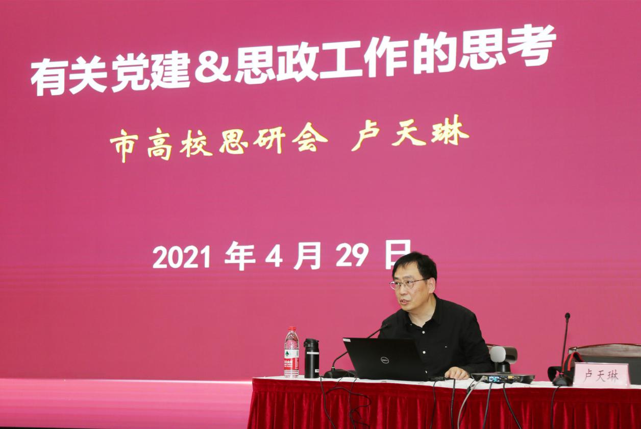 卢天琳长期从事教育系统的思想政治理论研究,对高校思想政治领域的问题有深刻的认识。卢天琳就思政工作如何正确定位、如何树立科学的工作理念、课程思政怎样与实际工作相结合等谈了自己的见解,剖析了“思政”与“德育”“教育”等概念及内涵。卢天琳重点对“党建工作的背景与主线”“思政工作内容与方法”和“有关思政工作案例探讨”三个部分进行了阐释和针对性指导。他指出,开展思政教育要坚持育人为本,德育为先;以人为本,全员育人;因地制宜,因材施教;潜移默化,寓教于乐的原则。结合当下开展的党史学习教育,卢天琳还通过基本理论及原理、相关案例来阐述党史学习的重要意义,与会人员表示深受启发。