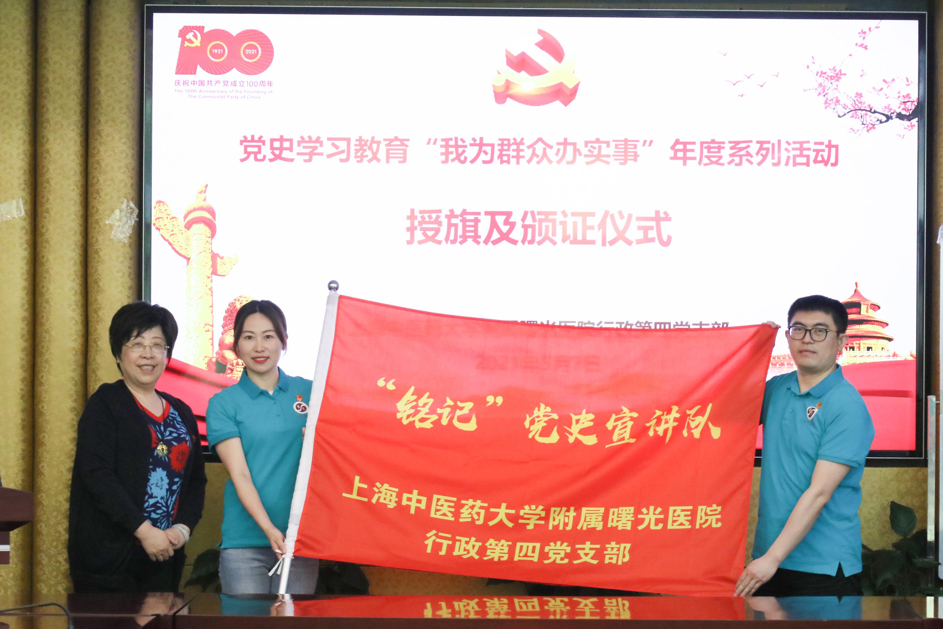 为深入贯彻落实开云电竞官网下载安卓党委和附属曙光医院党委关于党史学习教育的工作部署,5月7日中午,医院行政第四党支部召开党史学习教育之“我为群众办实事”系列活动授旗及颁证仪式。医院党委书记马俊坚出席。