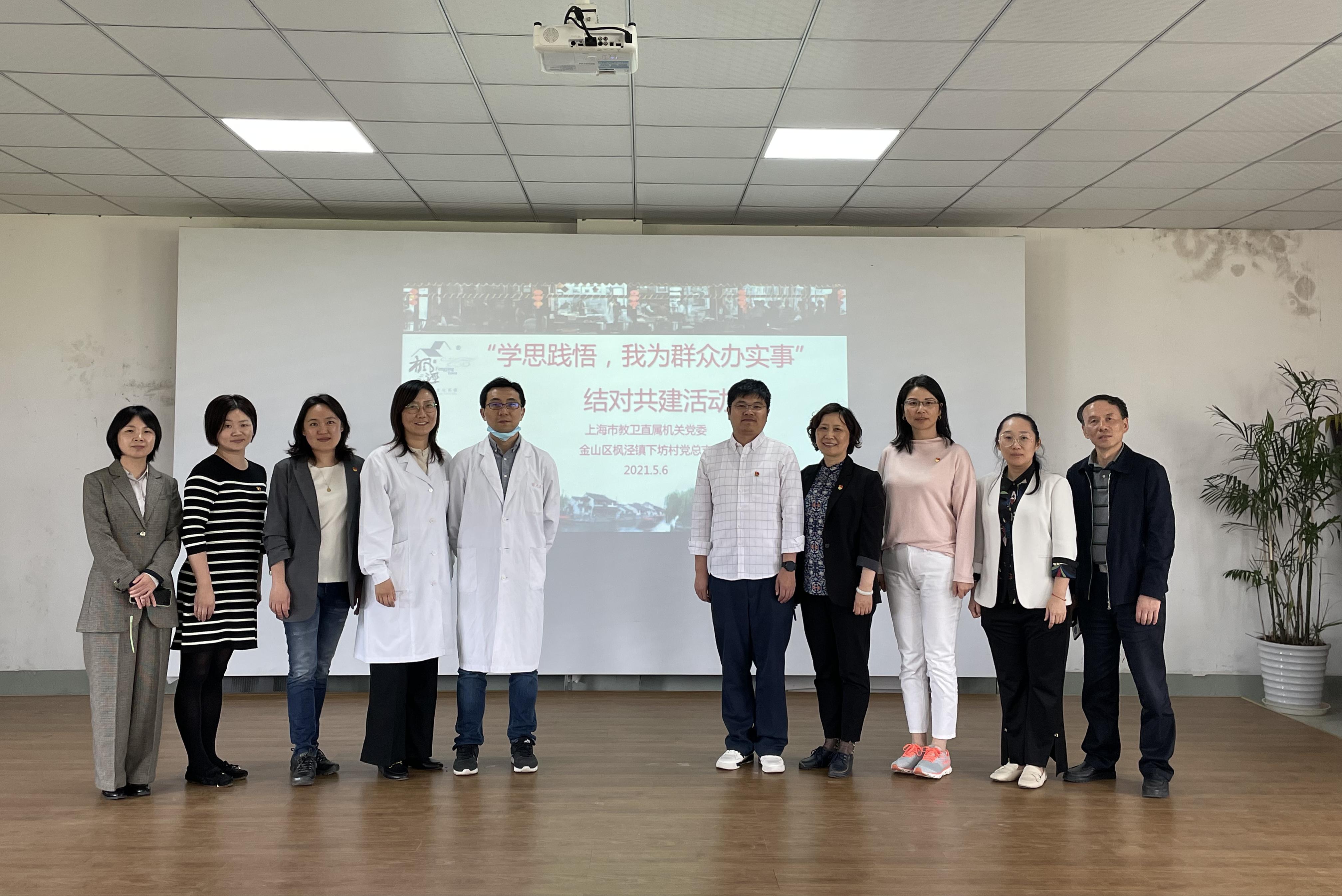 5月6日上午,由上海市教卫直属机关党委书记滕建勇带队,到金山区枫泾镇下坊村党总支开展“学思践悟,我为群众办实事”活动,举办健康讲座、专家义诊,向村民赠送康复杂志,上门慰问困难党员群众,将健康送到村民身边。