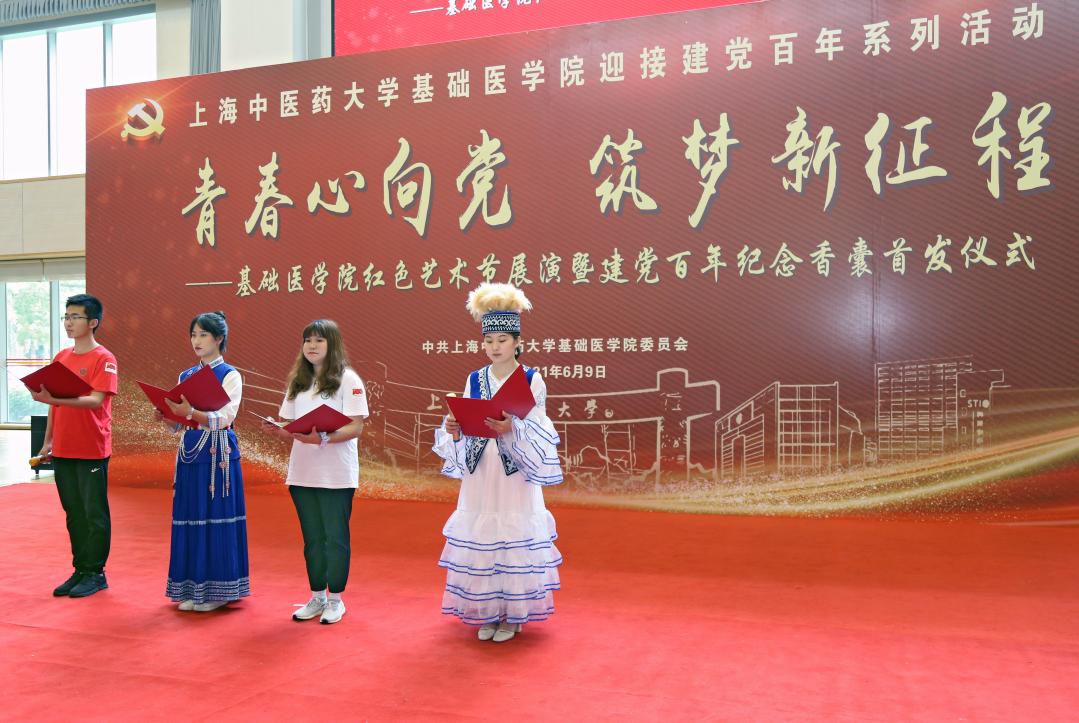 仲夏时节,绿树浓荫,草木深长。6月9日,“青春心向党 筑梦新征程”基础医学院红色艺术节展演暨建党百年纪念香囊首发仪式在我校体育馆举行。基础医学院全体毕业生党员、少数民族学生、港澳台学生和部分师生代表,共百余人参加。基础医学院学生艾力亚尔·吐尔逊和陆昕月主持。