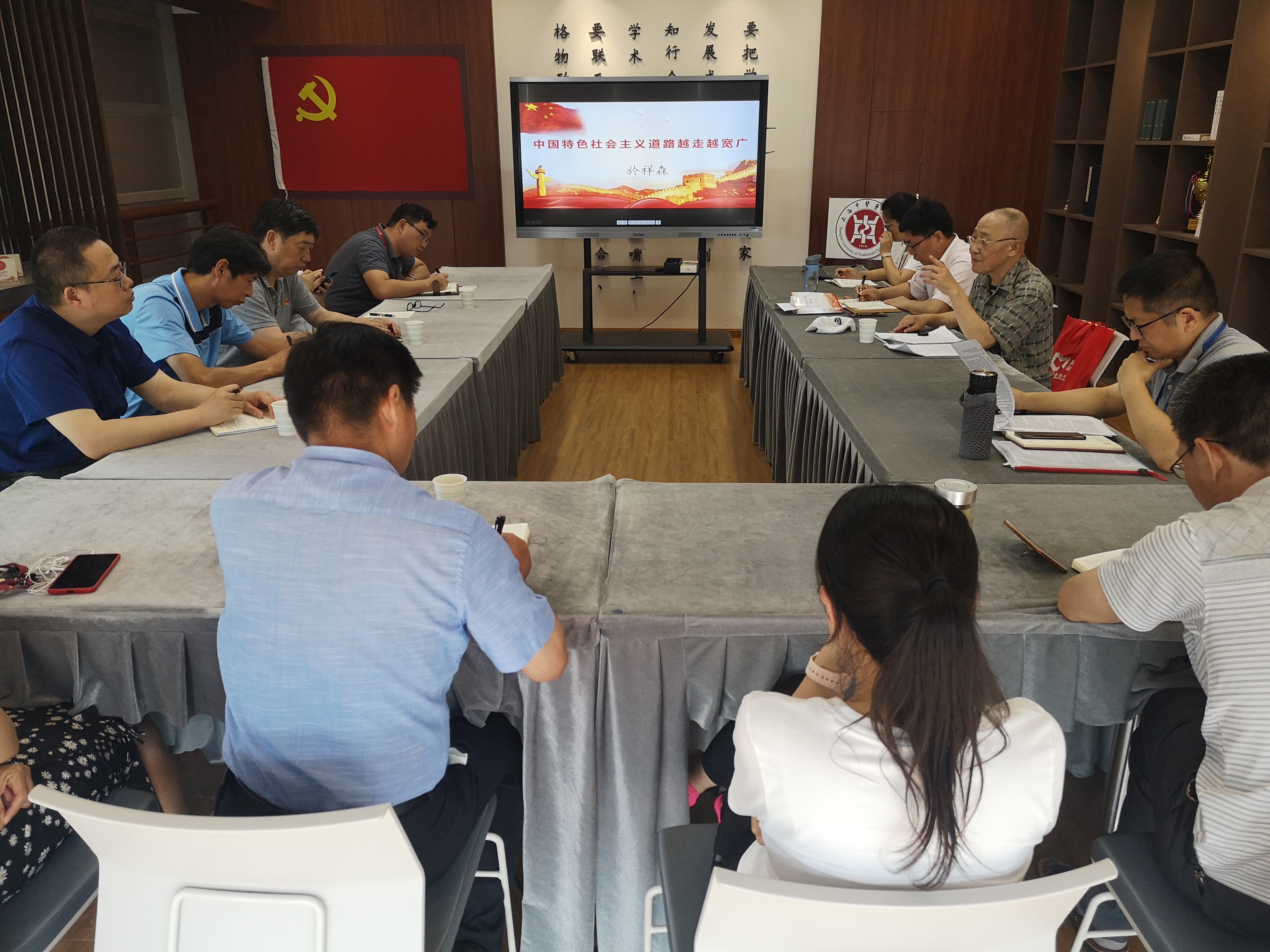 为进一步推进党史学习教育,加强二级部门资源共享、工作互动,6月21日图书馆党总支联合体育部、上海中医药博物馆、上海市中医老年医学研究所党支部,在图书馆二楼会议室组织开展联组党史学习教育,听取我校退休干部於祥森所作的《中国特色社会主义道路越走越宽广》主题报告。四个直属党组织的党政负责人和部分总支委员、党小组长、博物馆全体党员参加学习。会议由图书馆党总支书记石德响主持。