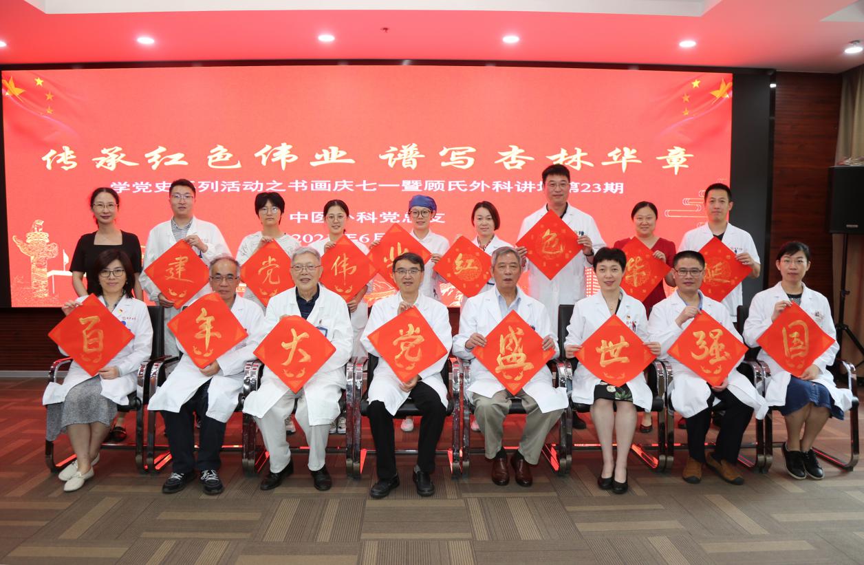 活动中,党员们表示,在中国共产党的领导下,一代又一代中医人也在接续奋斗、勠力拼搏。值此建党100周年之际,运用书画才艺追寻红色记忆,增强了与会人员为守护人民健康、为顾氏外科发展不断努力奋斗的决心和信念,也更加坚定了作为一名医务工作者为广大病患全心全意服务。