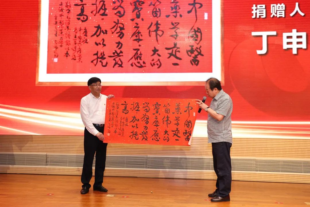 我校客座教授、上海市书法家协会主席丁申阳向学校捐赠一幅书法作品,内容为毛泽东同志对中医药作出的重要指示“中国医药学是一个伟大的宝库,应当努力发掘,加以提高”,鼓励学校师生在中医药守正创新、传承发展之路上开拓进取,不懈奋斗。
