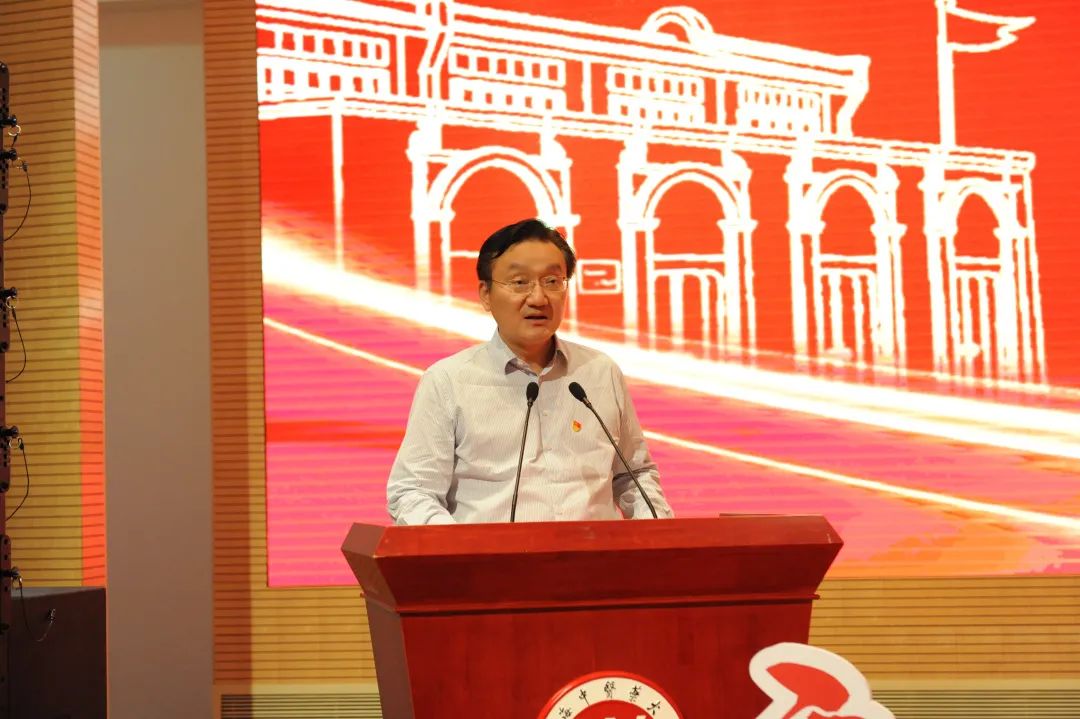 校党委书记曹锡康发表讲话。他指出,一百年来,我们党团结带领全国各族人民经历血雨腥风的革命、艰苦卓绝的建设、波澜壮阔的改革,取得了举世瞩目的光辉成就。学校成立65年来,始终初心不改,始终坚持党的领导、坚持立德树人、坚持传承创新、坚持特色发展、坚持育人为本,取得了丰硕的发展成果。