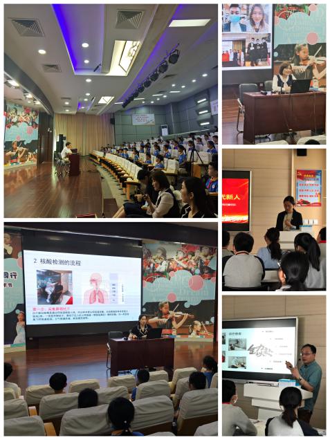 通过前期的精心备课,宣讲队的队员们把一段段党史通过一个个生动的小故事分享给中小学生们,医院抗疫工作的纪实视频《战疫·曙光》每次都会给师生们带来心灵上的震撼,不少师生忍不住流下热泪。援鄂医疗队党员张兴、武文文、尹成伟以及院内抗疫一线党员朱小贞分享的抗疫故事,也让学生们深刻感受到抗疫英雄们勇于担当、甘于奉献的使命精神。在进才实验小学的课堂上,宣讲队与医院综合第三党支部“检爱先锋”团队联合,向学生们分享新冠检测工作背后的故事,弘扬医者仁心、无私奉献的崇高精神。