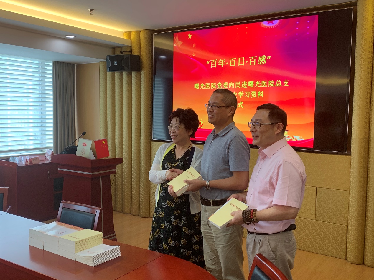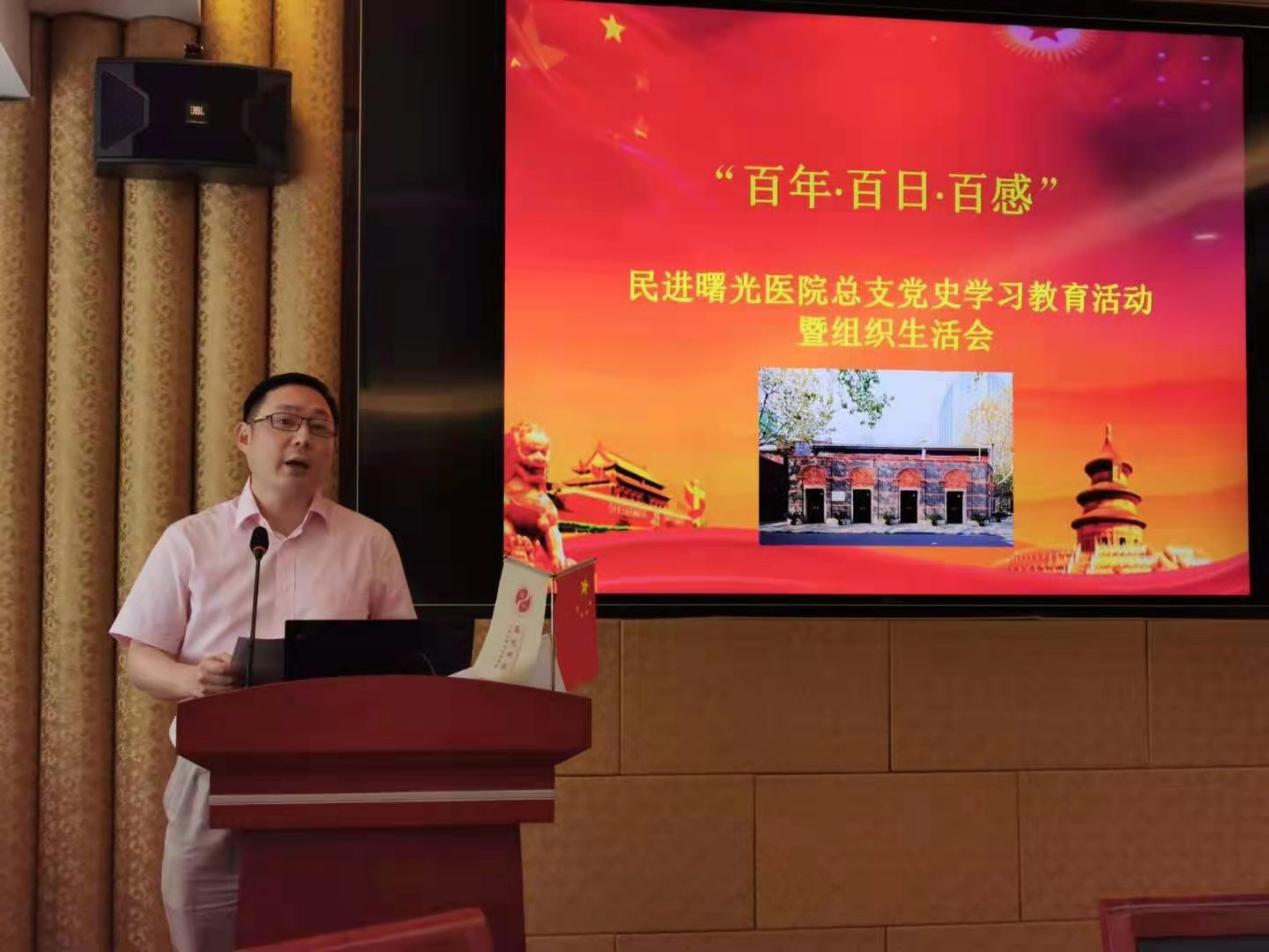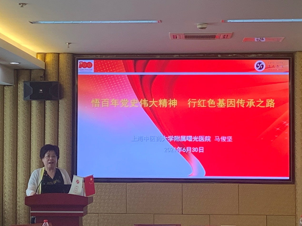 为贯彻落实习近平总书记在党史学习教育动员大会上强调的学党史、悟思想、办实事、开新局的指示和中共中央办公厅《关于在全社会开展党史、新中国史、改革开放史、社会主义发展史宣传教育的通知》文件精神,传承红色基因,夯实政治基础,6月30日,民进曙光医院总支举行“百年·百日·百感”党史学习感悟活动。我校附属曙光医院党委书记马俊坚,民进上海市委员会医药卫生专委会副主委叶伟成,民进上中医委员会副主委沈卫东、老领导蒋有倩和殷岫绮等,以及民进曙光医院总支部分成员出席会议。曙光医院组织统战部部长练慧及医院其他民主党派负责人和骨干到会。会议由民进曙光医院总支主委何峥主持。