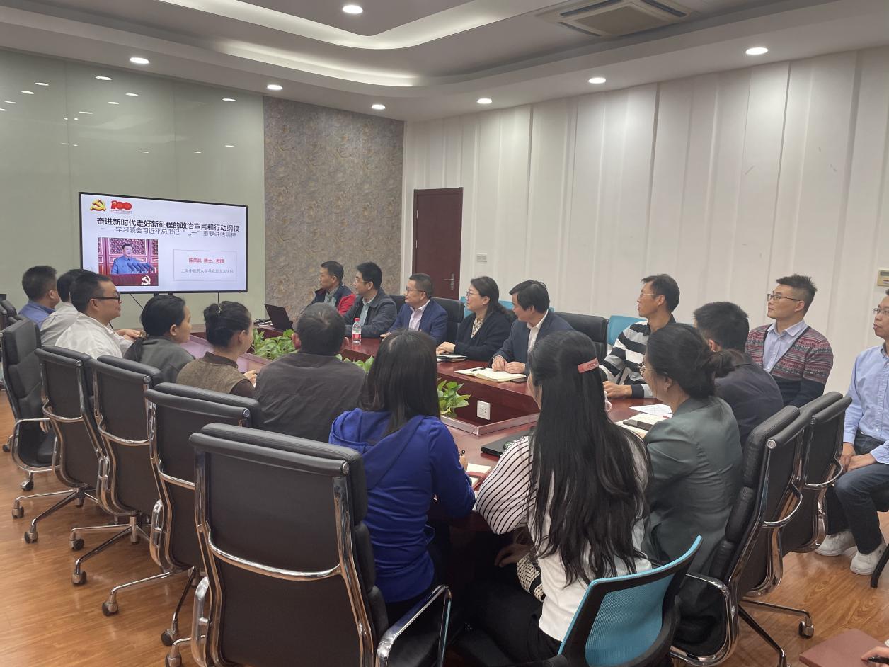 为推进党史学习教育往深里走、往实里走、往心里走,11月3日,针灸推拿学院党总支组织全体教职工在9421会议室开展政治理论学习,认真学习我校马克思主义学院陈荣武教授题为《奋进新时代走好新征程的政治宣言和行动纲领——学习领会习近平总书记“七一”重要讲话精神》的报告。学习会由针灸推拿学院党总支书记陈秋生主持。