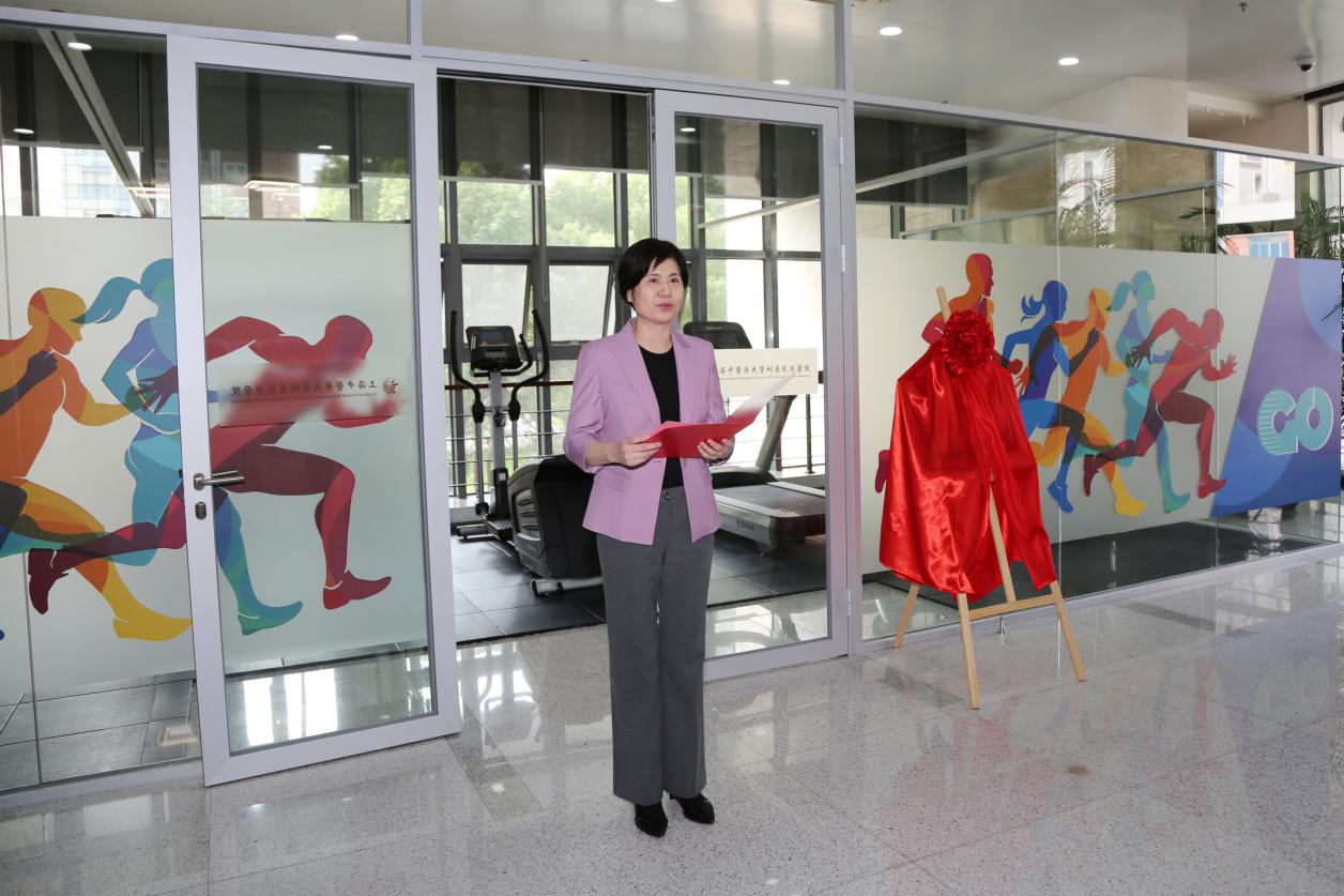 揭牌仪式上,龙华医院党委副书记、副院长、工会主席刘萍代表医院致辞,祝贺医院健身角开始启用,这是医院在开展党史学习教育过程中落实“我为群众办实事”实践活动的一项具体举措,是为职工在院健身提供便利,营造适量运动的健康生活理念,促进职工的身心健康,帮助职工以饱满的状态投入工作。