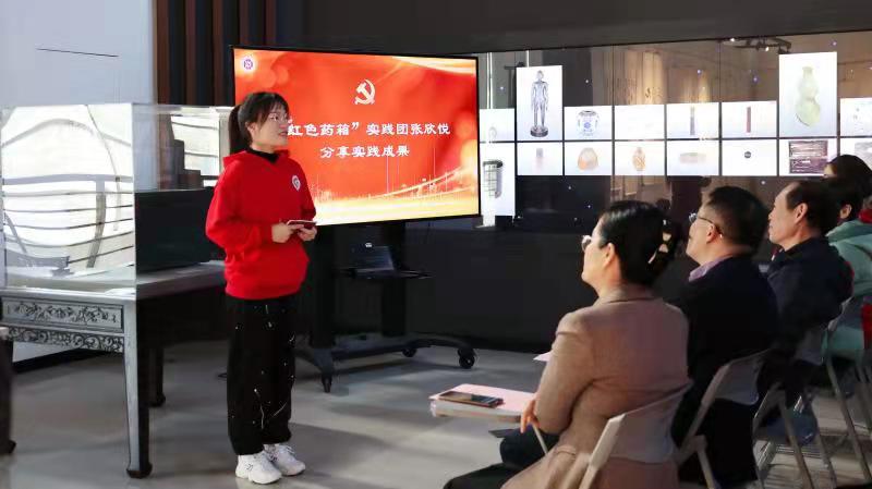 双方共同观看“红色华佗”傅连暲的红医药箱介绍视频,感悟革命年代老一辈医疗卫生工作者的使命担当。博物馆俞宝英讲述了红医药箱的“前世今生”,护理学院“红医药箱”实践团学生张欣悦汇报团队围绕红医药箱故事开展的暑期社会实践成果。在护理学院和上海中医药博物馆的共同策划指导下,该项目成果获得了2021年“知行杯”上海市大学生社会实践项目大赛二等奖和开云电竞官网下载安卓“求实杯”一等奖。