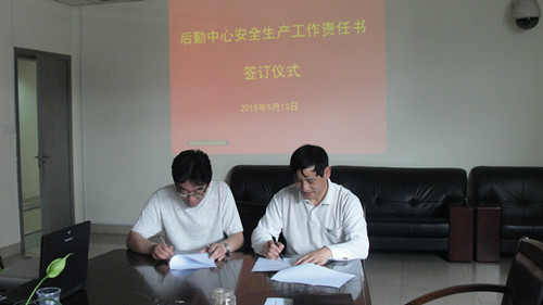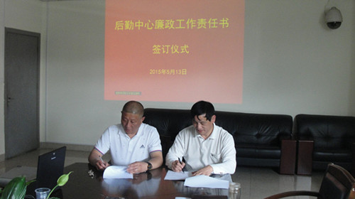 后勤中心领导与所属各部门负责人签订了2015年后勤中心安全生产工作责任书、廉政工作责任书。部门负责人纷纷表示一定要认真落实责任书的内容和要求,把安全生产和廉政工作落到实处。