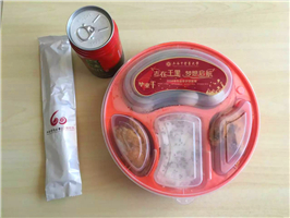 捧起这份由食堂大厨为毕业生们精心烹饪的“梦想套餐”,红色餐盒贴上“志在千里,梦想启航”八个金色大字映入眼帘。打开餐盒,发现每道菜品都饱含寓意:展翅高飞(香浓烤鸡翅)、一路平安(特色鹌鹑蛋)、鱼跃龙门(红烧小黄鱼)、节节高登(清炒芦笋节),深深寄托了母校食堂对广大毕业学子的衷心祝福及深切期望!一份可口美味的饭菜,再配上一罐凉爽的中药养生茶、一套精致的订制餐具包,每一处细节都体现了学校对毕业生的用心与细心!用餐后的同学们纷纷举起了大拇指,啧啧称赞!