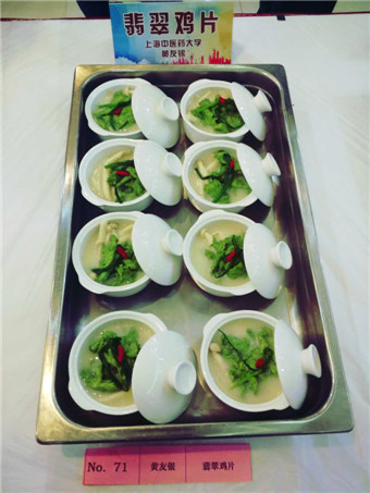2016年11月12日,上海市学校后勤协会餐饮管理专业委员会在上海大学举办了第二届上海高校创新菜肴比赛。来自上海37所高校的111个菜品,经过专业评审和学生评选相结合的评判,最终评选出禽类菜肴和最具人气菜肴金、银、铜奖共计68个。我校学生食堂黄友银的参赛菜品《翡翠鸡片》,荣辉禽类菜肴铜奖,菜品已被收录于《上海高校学生食堂创新食谱集锦》中。