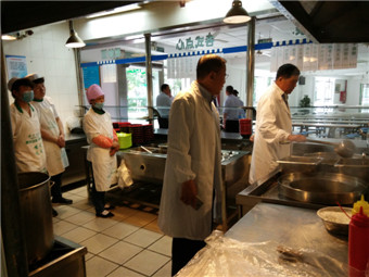 听取汇报后,督查组专家对食堂现场与书面材料进行了检查和指导,主要内容包括食品安全责任制、食品原料安全、食堂卫生现场管理、食品添加剂规范使用、员工健康档案与安全培训、餐厨垃圾规范处置和科学管理等方面。