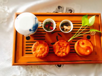1、养生特色月饼(太极、八卦、校徽图案):莲蓉枸杞、养生红豆、滋补芝麻、养颜红枣、清热凤梨、椒盐五仁、莲蓉蛋黄等