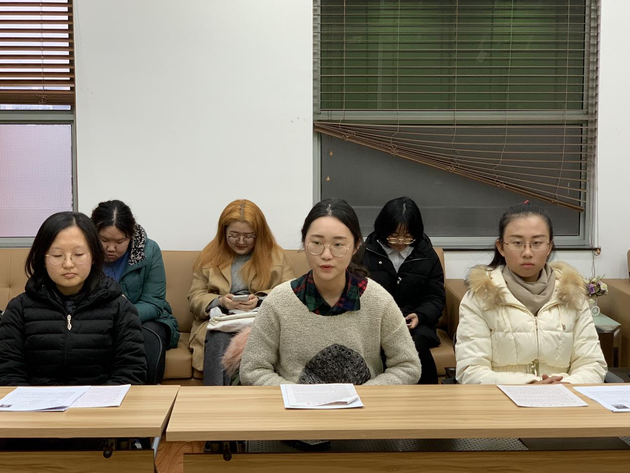 教工党支部书记谢燕也对大家提出几点要求:首先在学习工作的同时要不断地提高自身的思想境界,将党的精神与自身的工作和学习结合。其次,要学会对社会舆论和信息的正确判断。最后在工作和学习中要争取把自己的能力发挥到最大,以实际行动争取早日成为一名正式共产党员。