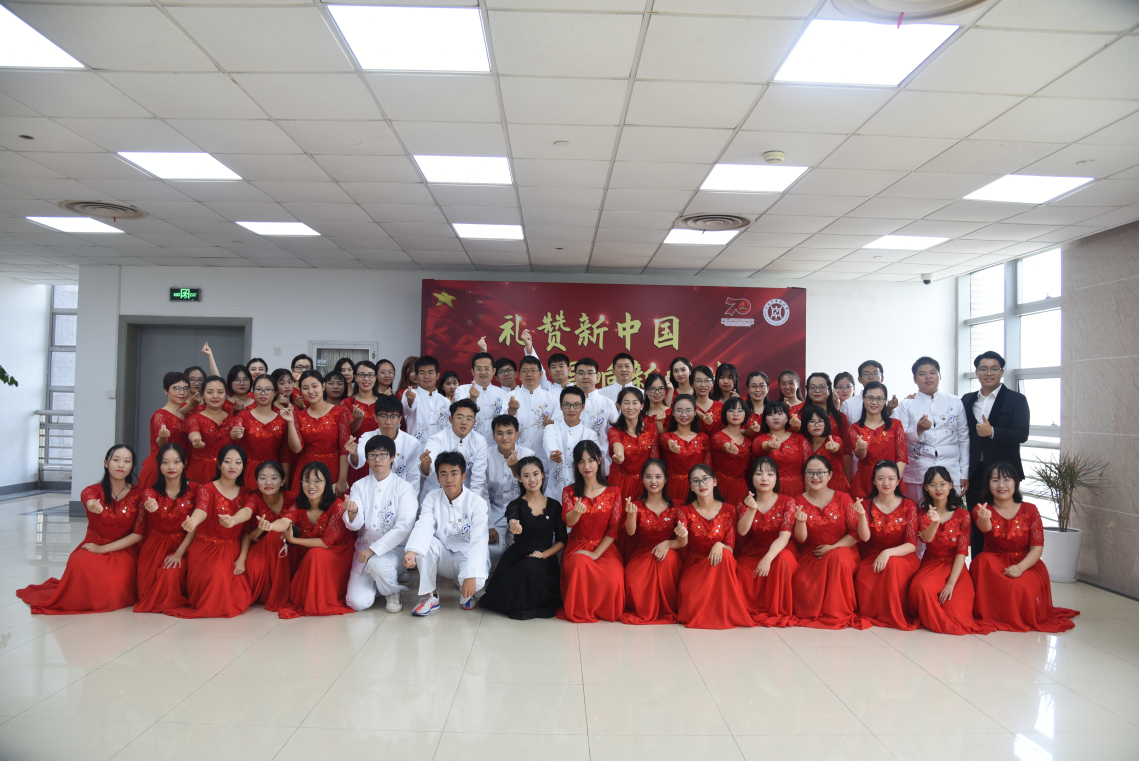 学院参加主题歌会的信息一发布,师生们纷纷踊跃报名,经遴选,60名师生作为合唱表演团成员参加国庆主题歌会。队员们利用课余和工作之余进行多次认真排练。从选歌、队形、妆容、服装道具、视频背景制作,每个环节和细节都反复斟酌商定。从指挥到领唱,再到合唱表演团的每一个队员,大家都打足精神,慷慨激昂,用嘹亮深情的歌声,为祖国献上最真挚的祝福。
