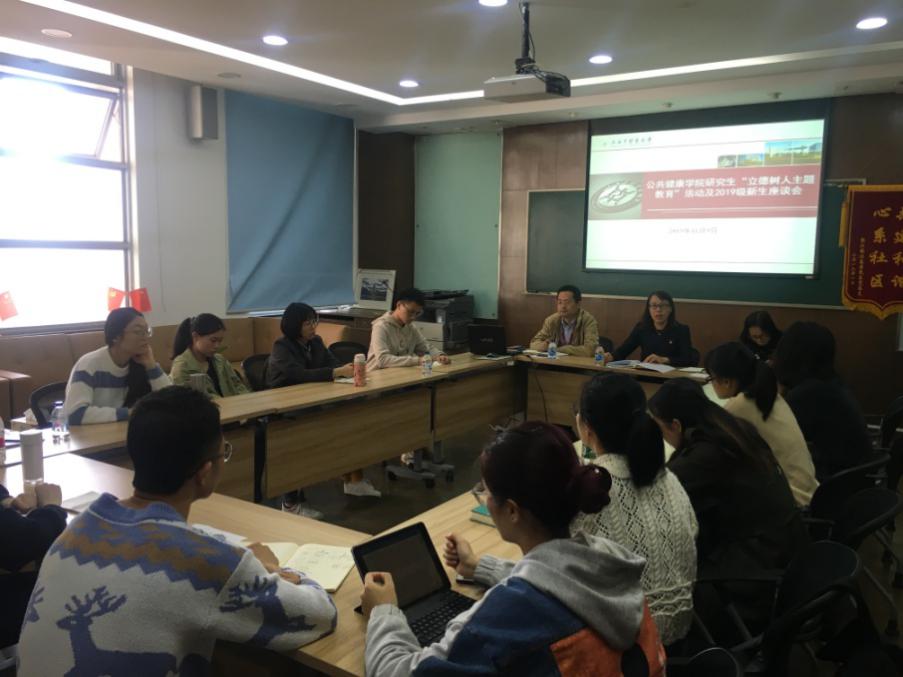 为进一步切实落实“不忘初心、牢记使命”主题教育总体要求,公共健康学院于2019年11月9日下午,在9303会议室召开全体研究生“立德树人主题教育活动”及新生座谈会。公共健康学院党总支书记段艳霞、党总支副书记干旦峰、副院长赵海磊及研究生辅导员共同参加。会议由副院长赵海磊主持。