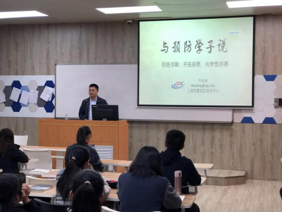 20191120日晚,我院邀请到邓森淼医生主要针对预防医学专业同学开展了一场主题为“与预防学子说‘拒绝浮躁,开拓视野,向梦想拼搏’”的讲座。