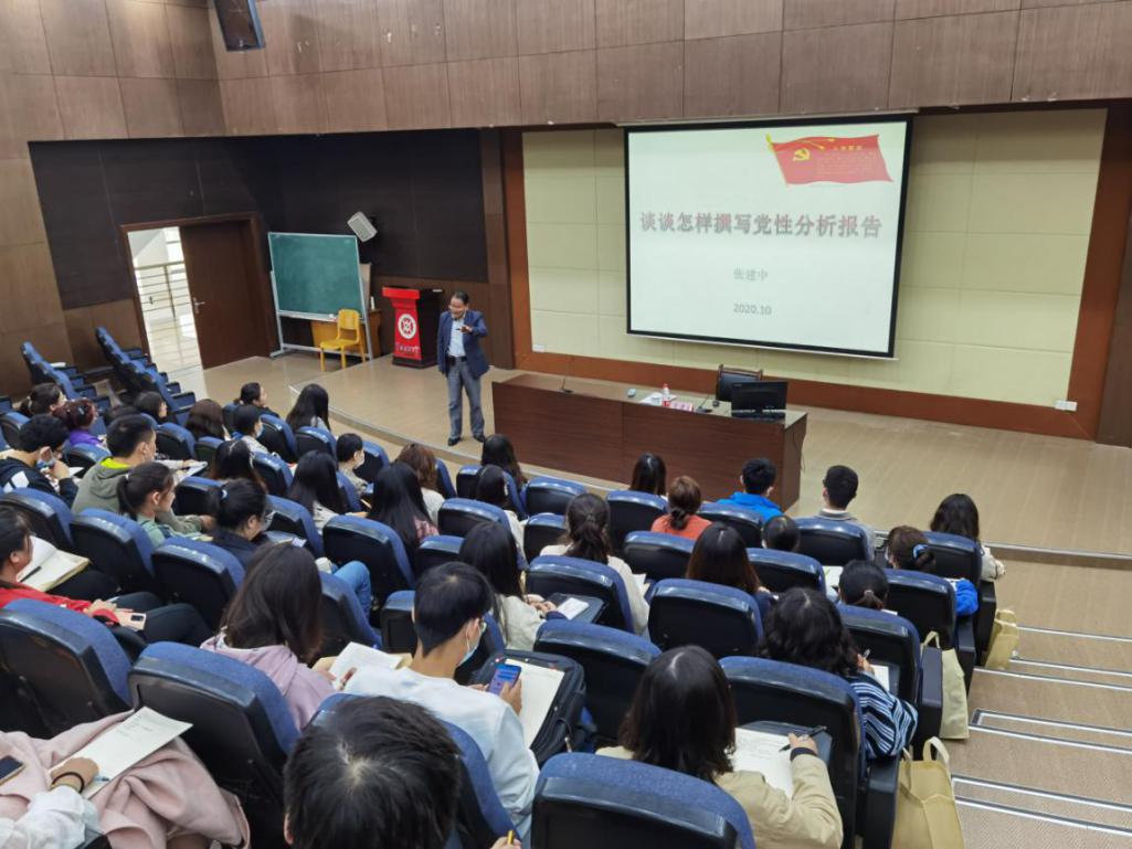 开学典礼结束后,退休局级干部党支部书记张建中为预备党员班作“谈谈怎样撰写党性分析报告”主题报告。他从什么是“党性”,共产党人为什么要作党性分析,如何撰写党性分析报告等角度勉励学员要联系自己的思想和学习工作实际作好党性分析,达到自我教育、自我提高、自我完善,增强党性的目的。马克思主义学院党总支书记陈秋生为发展对象班学员作“学习百年党史坚定理想信念”主题报告。他从在历史长河中探寻初心使命、在百年党史中汲取前行力量、在学思践悟中坚定理想信念三个部分进行讲解,进一步加深了学员们对党的历史、党的基本理论和基本知识的理解,提高发展对象政治素质,真正做到端正入党动机,自觉从思想上入党。