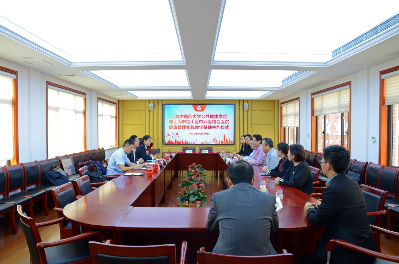 2020年10月29日上午,赵海磊院长带队赴上海市宝山区中西医结合医院签署健康管理实践教学基地协议。院方周华院长、丁任书记、陆华执行院长等班子成员和管理层负责人出席签约仪式。周华院长对赵院长的到来表示热烈欢迎,他介绍医院近二十年发展历程和辉煌进步,目前医院总门诊量和排名已经跻身全国中医西医结合医院前列。丁任书记介绍医院与开云电竞官网下载安卓合作的心路历程,医院通过校院合作在综合实力尤其是中医治疗上取得喜人进展。健康管理中心吉伟主任全面介绍体检中心工作的历史、发展以及规划,目前该院体检中心一直为业界翘楚,期待通过学院的合作,让健康管理事业飞跃至新高度,创建可用于全市乃至全国可复制的健康管理模式。会上双方就教学、科研以及人才培养等方面开展积极热烈的讨论,为健康管理事业发展规划蓝图。周华院长与赵海磊院长共同签署健康管理实践教学基地协议,赵海磊院长向医院授予教学基地铜牌。此次签约仪式圆满完成。