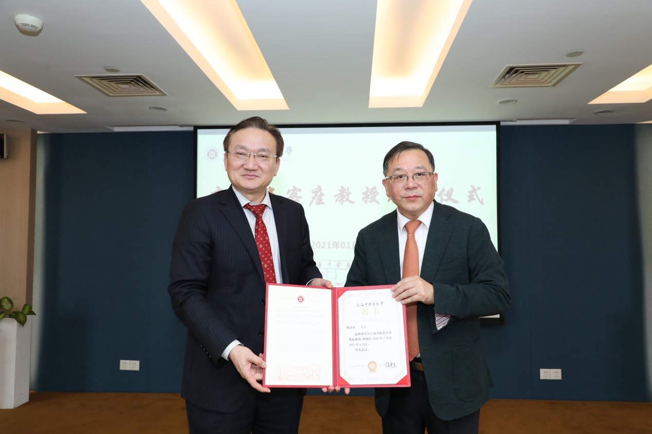 2021年1月21日上午,李国华客座教授聘任仪式暨学术交流活动在国际交流合作中心三楼320报告厅举行。学校党委书记曹锡康、校长徐建光、副校长陈红专出席聘任仪式和学术交流。活动由公共健康学院院长赵海磊主持。