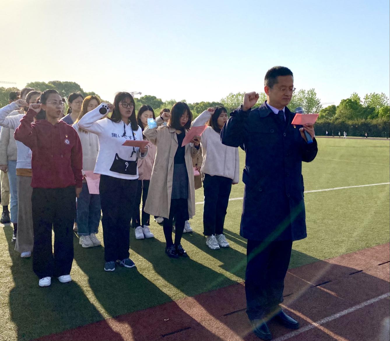 最后,赵海磊院长带领全体师生党员同志,面向鲜红的党旗重温入党誓词。让党旗、国旗见证铮铮誓言,让红色的信仰擦亮我们公健学子青春的精神底色。鲜红的党旗是我们火红的信仰,沐浴在党的光辉下,公健青年要争做时代新人,勇踏新征程!