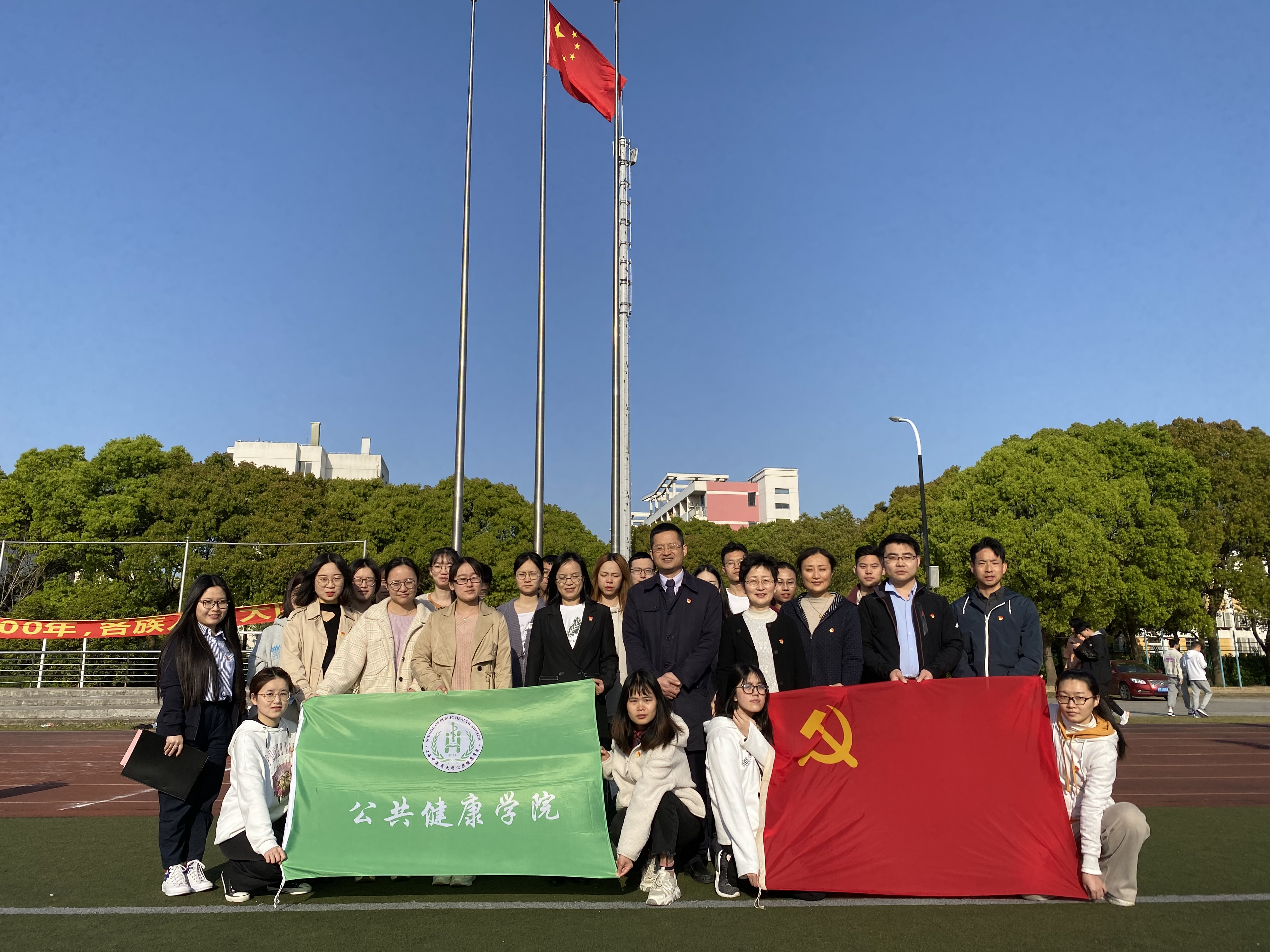 迎着清晨的第一缕阳光,伴随着激昂的国歌,五星红旗在公共健康学院全体研究生和学院领导、老师们的注目下冉冉升起。