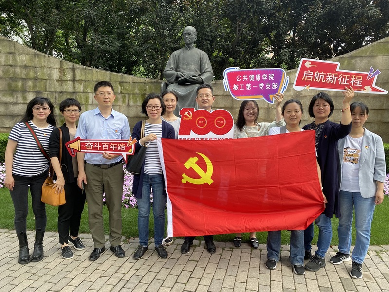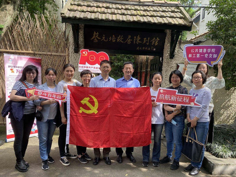 514日下午,公共健康学院教工第一党支部10位党员同志响应学校党总支号召,集体前往刘长胜故居和蔡元培故居等红色革命遗迹,参加“我为建党百年打卡”活动,用脚步丈量红色热土,以行动寻访党史印记。