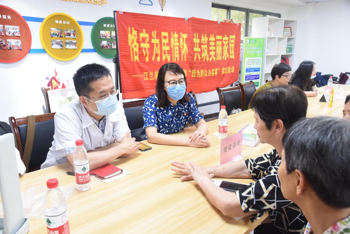 为庆祝建党100周年,积极响应基层党组织开展“我为群众办实事”活动的号召,发挥支部党员特长,促进群众健康,公共健康学院党总支开展主题为“促全民健康奔全面小康”活动。6月11日,由公共健康学院党总支书记段艳霞、院长赵海磊带队,教工第一党支部、教工第二党支部、学生党支部等支部党员赴江兰居委开展“我为群众办实事”活动。在江兰社区党支部的帮助下,学院党员面向老年居民开展系列活动,获得江兰居委受众居民的一致好评。