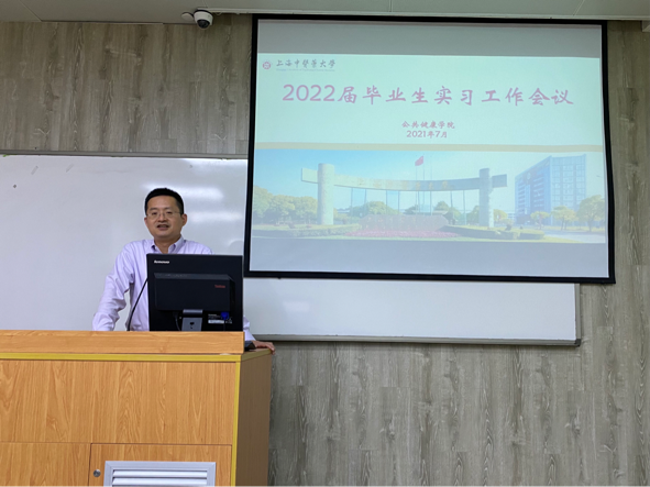 为帮助学生了解实习单位业务职能及相关条线,引导学生明确毕业实习的学习要求和目标,学院于2021年6月20日和7月1日展开岗前培训及实习动员会。院长赵海磊、党总支副书记干旦峰、预防医学教研室金如锋、颜雪、李倩三位老师和2017级预防医学全体学生参加。培训邀请了同济大学附属皮肤病医院王瑞平副教授、普陀区卫生健康委员会监督所刘晔翔所长、浦东新区上钢社区卫生服务中心丁燕副主任、浦东新区疾病预防控制中心肖绍坦副主任担任相关培训课程主讲。