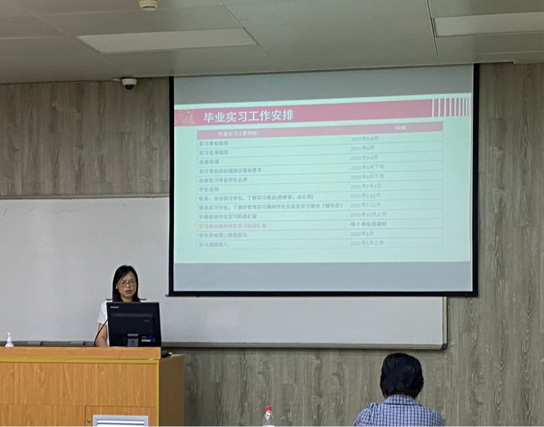党总支副书记干旦峰对实习规章制度作出详细解读,特别强调实习纪律和请销假制度,希望同学们严格遵守学校和实习单位的规章制度,以积极态度迎接毕业实习。
