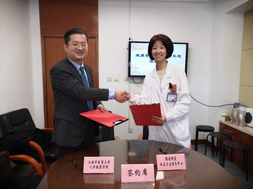 12月31日上午,我院与黄浦区豫园街道社区卫生服务中心就“健康管理学科合作共建”签约暨揭牌仪式顺利举行。学院院长赵海磊、副院长谢国群、党政办公室主任冀黎平、荆丽梅副研究员、汤晶晶老师、周典老师、刘霞老师,豫园街道社区卫生服务中心主任张扬、副主任刘凯等共同出席。