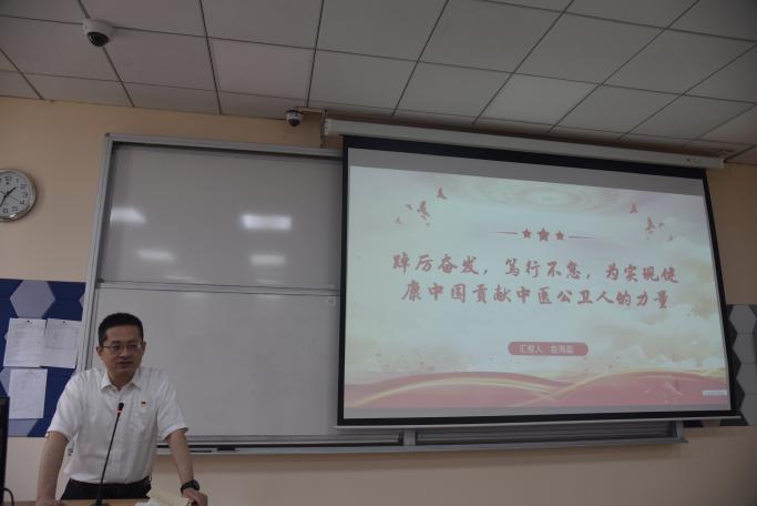 赵海磊院长作《踔厉奋发,笃行不怠,为实现健康中国贡献中医公卫人的力量》党课报告,从主题教育总要求出发,对《“健康中国2030”规划纲要》进行解读,最终着眼于中医公卫人的使命——以中医药创造性的研究成果提升人民健康水平。在十四五规划迎来中期之际,勉励公卫师生传承精华、守正创新,踔厉奋发、笃行不怠,共同转变观念,着力于高质量发展,紧密围绕深化开云赛事预测改革,发挥中医药学科优势,提升公共卫生和预防医学学科实力,努力推动公卫事业发展。