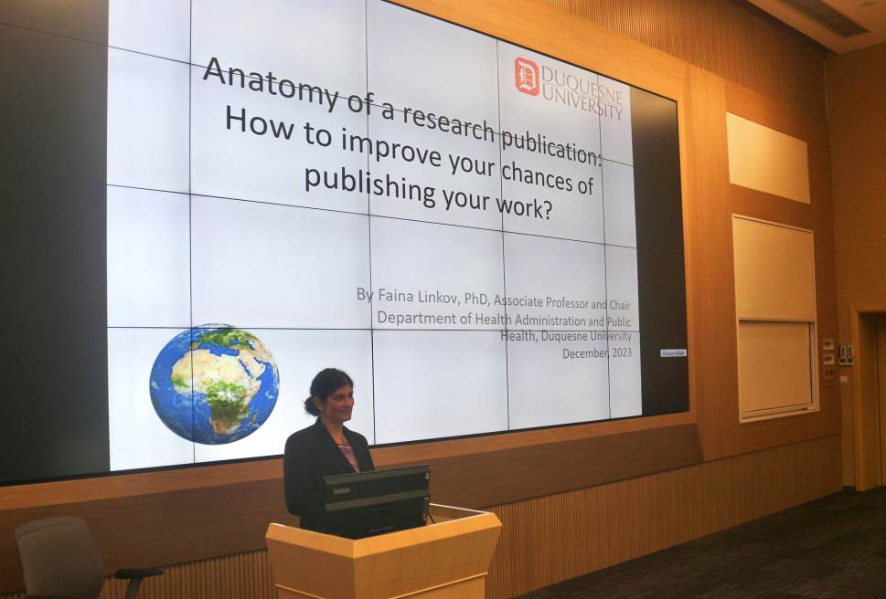 12月12日和13日下午,我院邀请美国杜肯大学兰戈斯健康科学学院卫生管理和公共卫生系副教授兼系主任、匹兹堡大学医学院兼职教授Faina Linkov来我院为师生进行学术讲座。