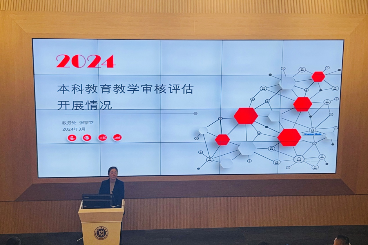教务处处长张亭立进行新一轮本科开云赛事预测审核评估宣讲动员,她重点强调“以评促建、以评促改、以评促管、以评促强”方针,强调以立德树人为思想统领,坚持党的全面领导;指出要紧紧围绕评估新趋势开展工作,我校将以应用研究型高校为评估类型,开展线上线下“一体化”评估;详细介绍指标体系、各阶段任务、前期已完成的工作和后续工作安排。张处长希望全体教职工以主人翁精神参与到本次评估工作中,共同促进学校本科人才培养教育质量。