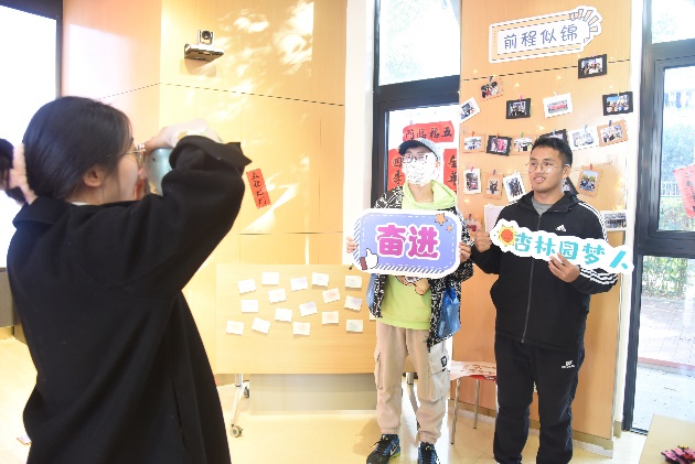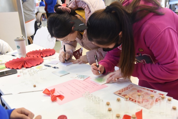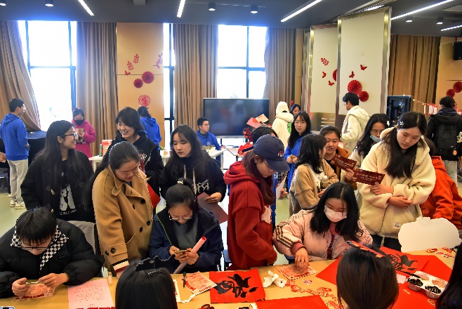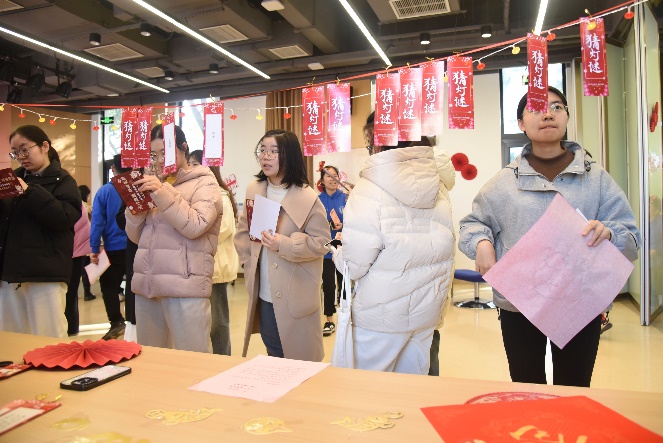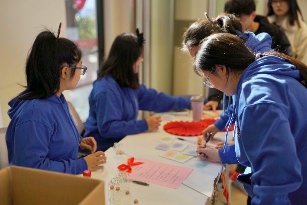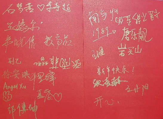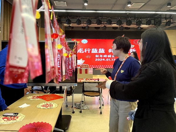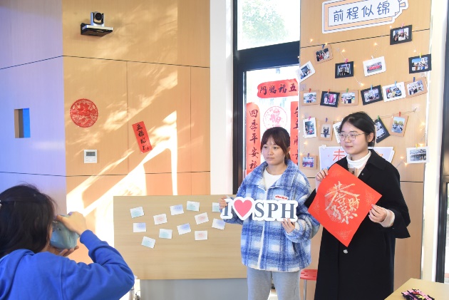 本次新年游园会以新年的热闹氛围为底色,通过抽福签、猜灯谜、对春联、写福字、投壶等传统活动弘扬中华优秀传统文化;同时融入学院特色,通过创意签名、交换祝福、合影留念等活动促进师生间、学生间的交流。在这里,大家纷纷写下对新一年的美好期盼,彼此传递着对新一年的美好祝愿。
