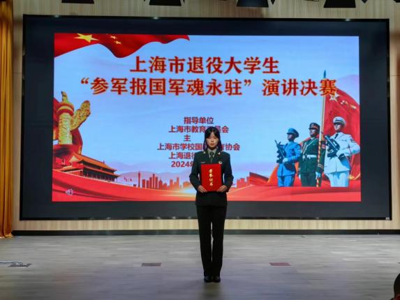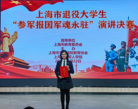 为深入贯彻《兵役法》《国防教育法》《爱国主义教育法》,进一步在全社会营造“关心国防、支持征兵”的浓厚氛围,持续激发青年参军热情,鼓励退役大学生士兵继承和发扬中国人民解放军优良传统,为社会做出新的贡献,6月22日,由上海市教委、上海市学校国防教育协会、上海退役军人学院、上海市人民武装学院主办的上海市退役大学生“参军报国 军魂永驻”演讲比赛在上海师范大学举行,我校中医学院张卓雅、公共健康学院王熙雯凭借激情澎湃的演讲和出色的表现分别斩获二等奖和三等奖。