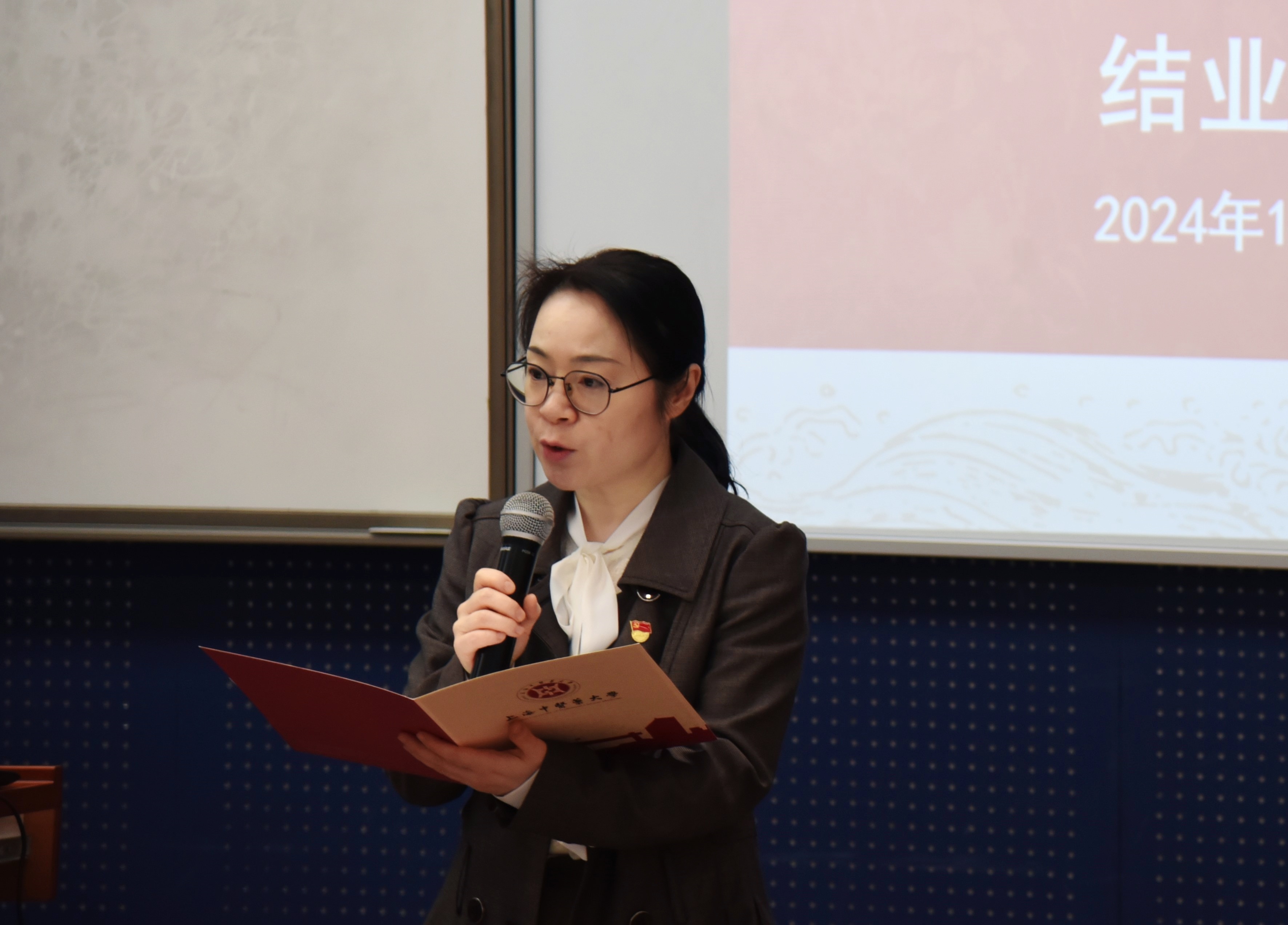 校党委组织部(统战部、党校)部长周宁慧宣读本期培训班优秀学员、优秀简报获奖名单,3名学员获评优秀学员、1个小组获评优秀简报组,与会领导为学员颁发荣誉证书、结业证书。