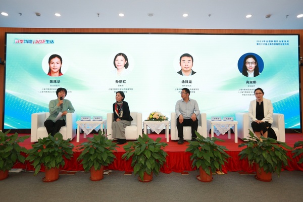 启动仪式后,黄浦区疾病预防控制中心(上海市黄浦区卫生健康监督所)肿瘤与伤害防制科高淑娜主任医师、黄浦区豫园街道社区卫生服务中心张扬主任、我校附属岳阳中西医结合医院肿瘤科郭晓冬主任医师、公共健康学院孙丽红副教授、陈学芬副教授以及徐祥龙青年研究员分别围绕“多角度聚焦肿瘤全程管理”、“健康生活,远离肿瘤威胁”两大主题展开深入探讨。