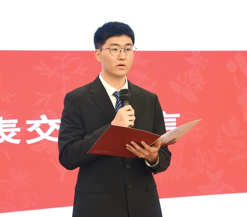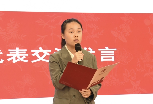 中医学院中医学(5+3一体化)丁钰、交叉科学研究院中药学卞琨杰、公共健康学院公共事业管理刘怡萱分别作为优秀学员代表交流发言,他们汇报了学习经历与思想收获,并代表全体学员郑重承诺,将以本次培训班作为新起点,把对党的忠诚内化为思想自觉,把为人民服务的初心转化为实际行动,在深化改革实践和医学健康事业中践行担当、贡献青春。