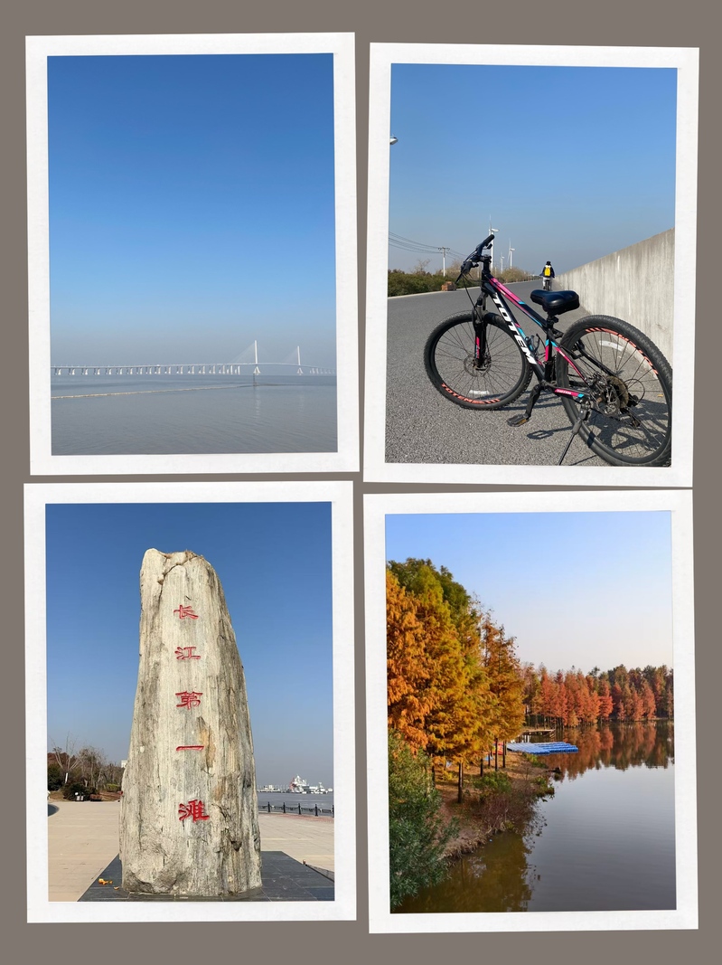 队伍首先抵达长兴岛江边骑行起点,一场近10公里的江边骑行正式拉开帷幕。秋日的江风轻拂,岸边芦苇摇曳,江面上船只悠悠驶过,远处的崇明长江大桥如一条巨龙横卧江面,连接起长兴与崇明两地,宏伟的桥身与澄澈的江水、湛蓝的天空相映成趣,构成一幅灵动的秋日画卷。教职工们或结伴而行,或快慢相间,一边感受骑行带来的畅快淋漓,一边欣赏沿江的绝美秋景,不时驻足远眺大桥雄姿,纷纷感叹工程的恢弘与自然的壮阔。途中,大家相互鼓劲、彼此等候,不时停下脚步记录美景,欢声笑语洒满了整条骑行路线。