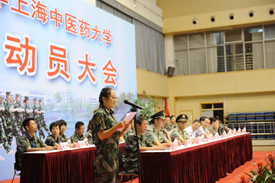 700多名身着戎装的2014级新生以崭新的姿态迎接军营生活的洗礼和考验,迈出大学生活的第一步。会上,何星海首先宣读2014年军训团干部名单。军训团副团长、校武装部部长夏国荣介绍2014年军训实施计划。校领导分别向军训团授团旗、营旗和连旗。护理学院陈赛男代表全体新生发言,康复医学院关琳子代表辅导员发言,明确表示将严格要求自己,向解放军战士学习,保证顺利完成军训任务。