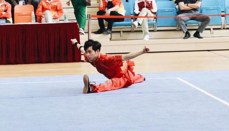 突发的损伤,打乱了武术队的节奏。在师生担忧之际,他积极调整队员情绪,并为了集体荣誉放弃手术治疗,在休息两周后,毅然返回训练场,与队员们一同备战比赛。他的行为极大的鼓舞了队员们,然而每一次跳起、落下、发力带来的疼痛,他都自己默默的承受。在最终竞赛中,他以2金1银完成了个人项目,以1银1铜带领队伍拿下了集体项目,最终我校蝉联冠军。
