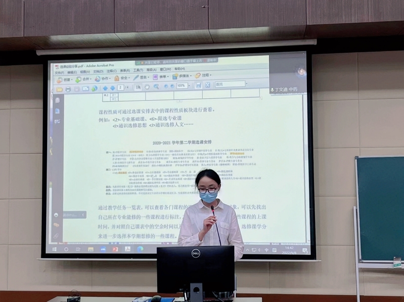 低年级时,作为八年制学生,她在华东师范大学进行联合培养。沿着那条樱桃河,能够到达教室与食堂,能够连通实验室与体育馆,想不到一条河就能概括她生活的全部:上午在北边的教室里和泰勒级数“搏斗”,下午则会“蜗居”在东侧生物实验室,在仪器的轰鸣中处理数据;秋冬她常去南面的自习教室取暖背书,而春夏在樱花飞雪之际,她和伙伴们一起在团日活动中尽享春日芬氲。一阵阵微风、一股股清流,这是华师大最静谧的景色;一次次努力、一个个探索,是她在医学学习道路上打下的最坚实的基础。挑灯夜读之时,她逐渐明白自己的特长,保持全面发展的同时着力发掘英语特长,以期用英语讲好中国故事、讲清中医特色;探奥索隐之际,她迅速锻炼实验探究技能,完成基础实验之余探索相关领域前沿,在有限时间里追寻无尽可能。