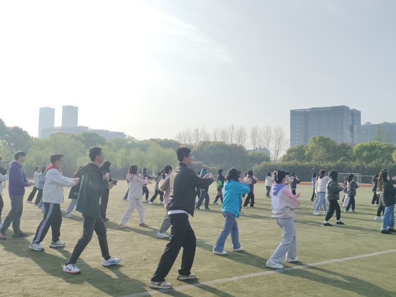 传承,是传承中医药文化的瑰宝,它含有中华文化深邃的哲学智慧、中华民族特有的思维方式、中华民族深厚的人文精神;明志,是知晓自己要去往何方,洞明自我,确立人生方向;信念,是坚守初心,秉持医者仁心、大医精诚的情怀,以实际行动在医道的路上不断精进。随后2022级中医学(五年制)王张宇同学带领在场的同学们进行本周“闻鸡起武”训练,初生的朝阳下,芨芨草地上,中医学院学子们开腿阔步,以海纳百川之姿运阴阳于两掌之间,太极之仪至刚至柔,上善若水任方圆;以太极之精奥,破求医问道之艰难,求索上下而不止。(中医学院)