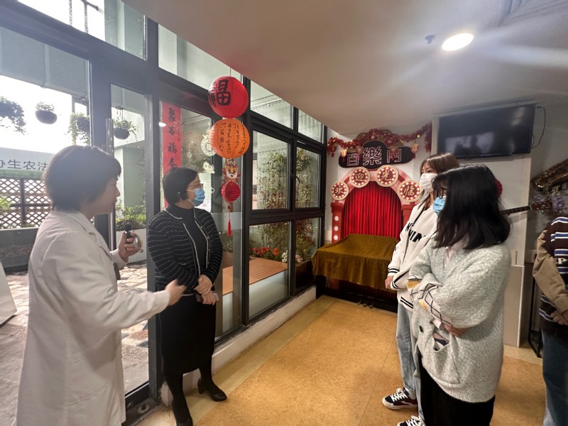 启动仪式和岗前培训结束后,我校志愿者们在医护人员的带领下,前往病区进行了院内沉浸式参观学习。他们亲身体验了“侭安居”、“生命树”、“生命壁画”等人文景观,感受到了病区独特的传统人文氛围和专业化、人性化精准服务。同时也就院内其他为老志愿服务项目进行了深入了解和体验。