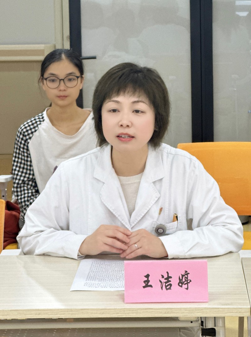 豫园街道社区卫生服务中心党支部书记王洁婷致欢迎辞,她向我校志愿者师生们、向上海市慈善基金会唯爱天使基金,上海市安宁疗护服务管理中心表达诚挚的感谢和敬意,为大家介绍目前中心安宁疗护工作的开展情况和志愿服务品牌特色,并期待在接下来的志愿服务中,志愿者们能深入了解和实践安宁疗护的理念,发挥专业优势和职业素养,以“国学安宁”为文化内涵,为生命最后一程需要帮助患者提供温暖和关怀。