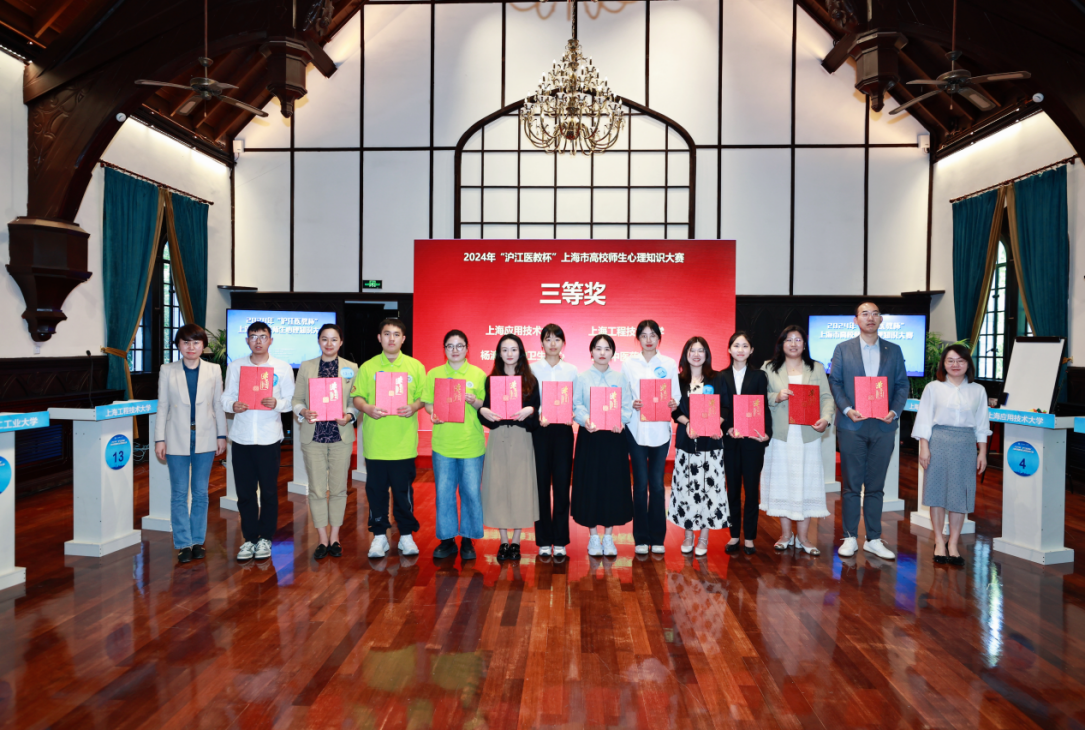 5月16日下午,由上海学生心理健康教育发展中心主办,上海理工大学承办,上海市杨浦区精神卫生中心协办的 2024 年“沪江医教杯”上海市高校师生心理知识大赛决赛在上海理工大学举行。来自上海交通大学、同济大学、华东师范大学、上海外国语大学、上海大学、上海理工大学以及上海市精神卫生中心等36家高校、医院报名参赛,经过层层选拔,14所高校和2家医院的选手脱颖而出入围决赛。我校中药学院辅导员范丽晨和学生徐嘉旎战略准确、思维敏捷,通过知识竞答、主题辩论等环节,凭借扎实的知识储备和出色的现场发挥获三等奖,学校获优秀组织奖。