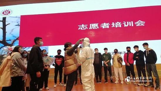 在基础医学院的志愿者培训大会上,5位退伍大学生聚精会神地听老师讲解,学习如何穿脱防护服等知识,为参加防疫志愿者工作打下坚实基础!退伍大学生周宏宇在部队服役时就从事抗疫工作,长期承担疫苗接种、核酸检测等紧急任务,当前,他作为抗疫志愿者,从搬运物资到队伍培训,继续发挥“退伍不褪色,若有战、招必回”的宝贵精神。